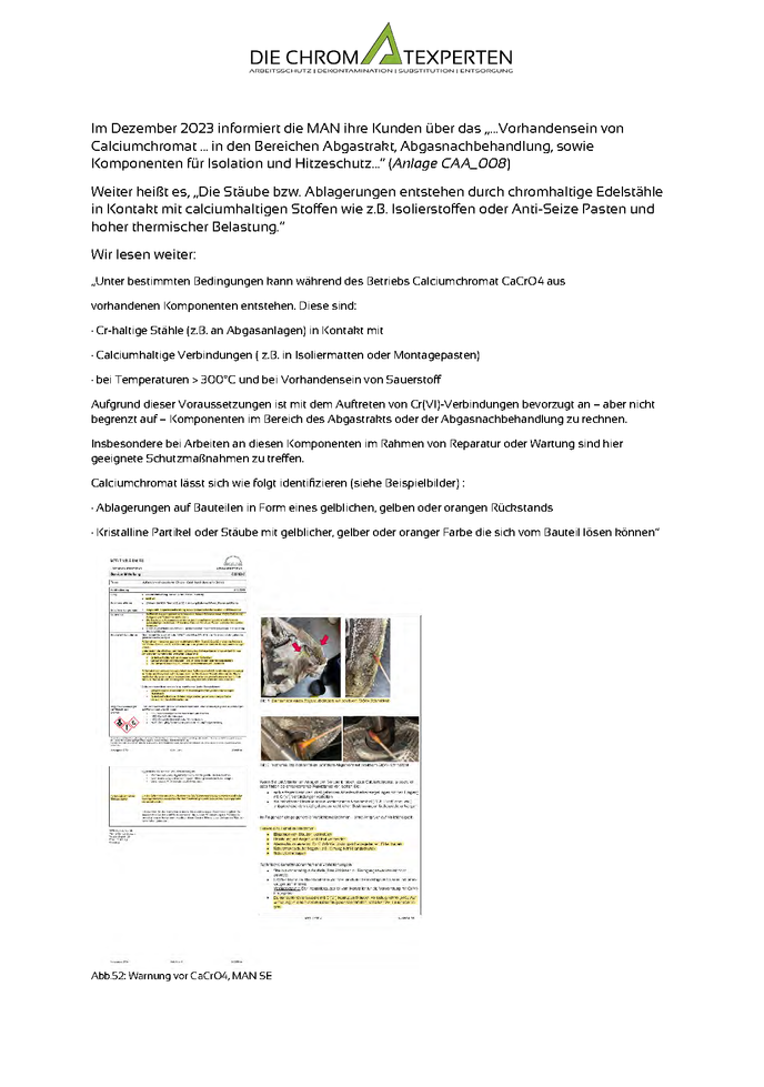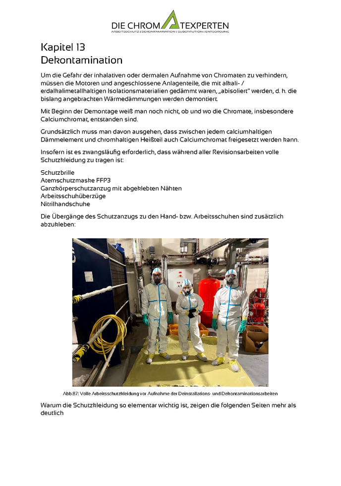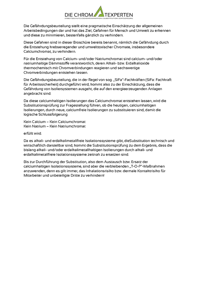 Immer mehr Verbände und Institutionen weisen auf die Chromatexpositionen hin, die insbesondere bei Wartungsarbeiten an vorher isolierten Anlagen wie Motoren und Turbinen auftreten und Mensch und Umwelt gefährden.